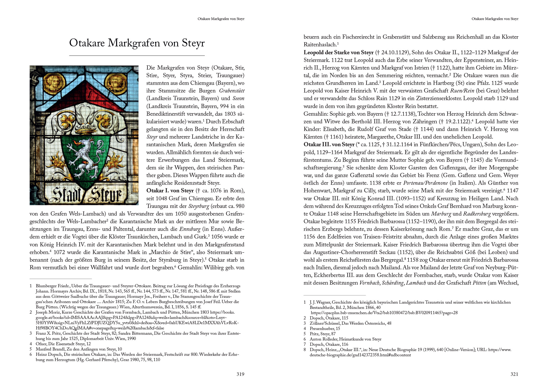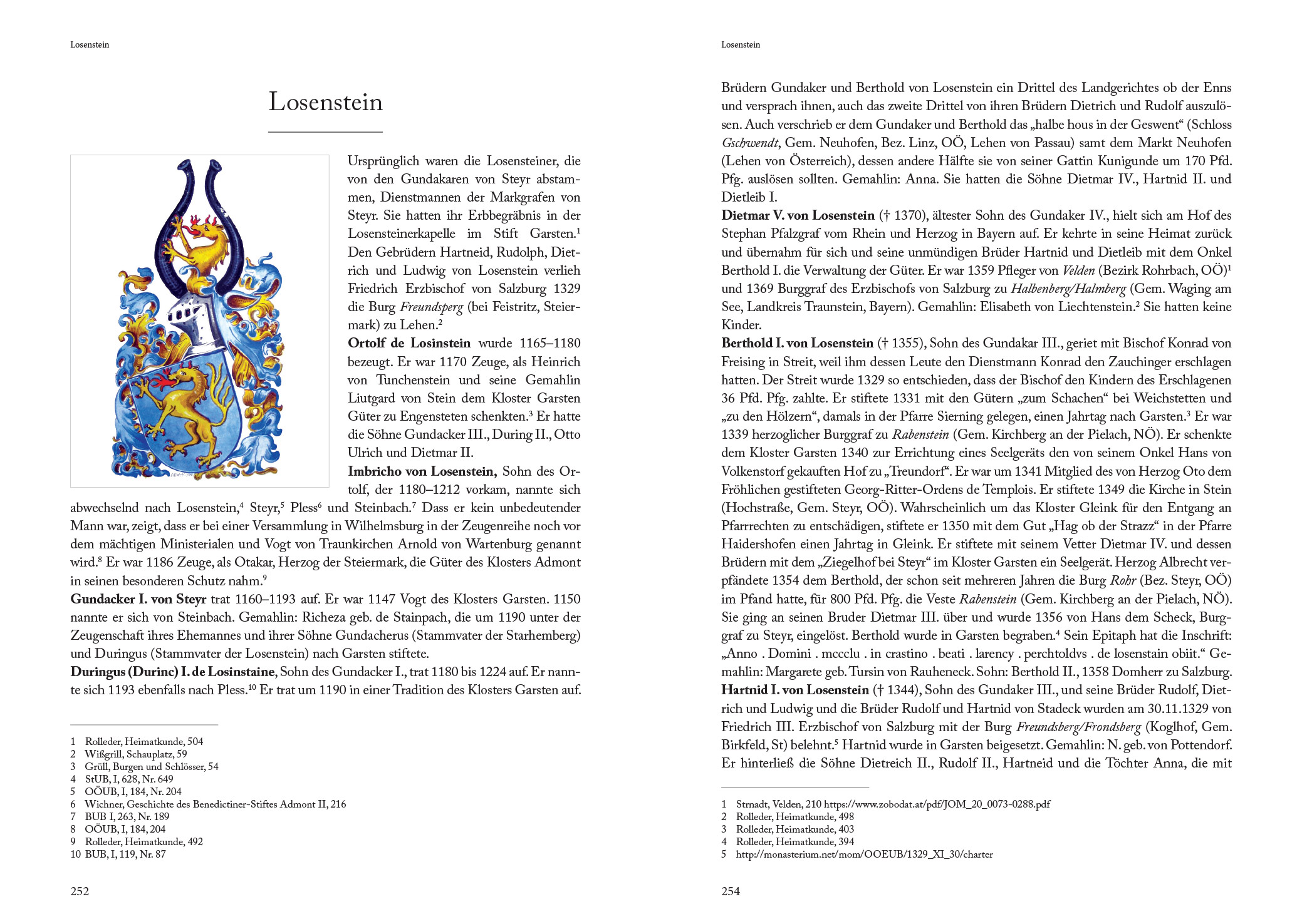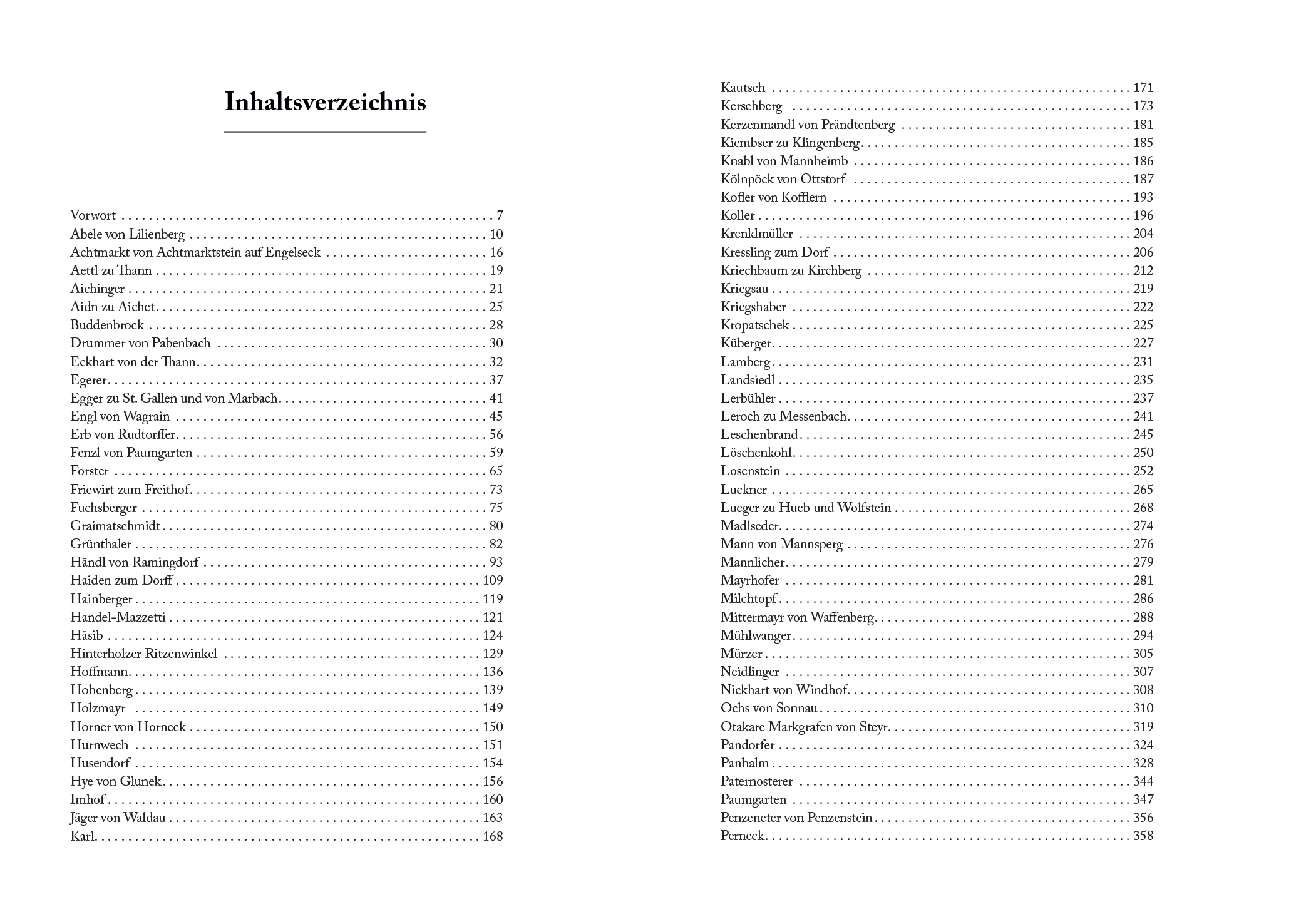 Steyr als Adelsstadt: 132 Adelsnamen von A-Z und faszinierende Anekdoten zum Nachlesen, wie z.B. jene von Hartneid II. von Losenstein. Er zündet aus Zorn, weil er im Kloster Garsten nicht standesgemäß bewirtet wird, den Meierhof des Klosters an, der samt Vieh und Hausrat abbrennt.